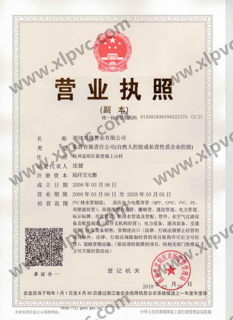 浙江興隆管業(yè)有限公司位于杭州市富陽(yáng)區(qū)(杭州第九新區(qū)),坐落在新登鎮(zhèn),相距杭州僅60公里,水、陸、空交通運(yùn)輸十分便利。浙江興隆管業(yè)有限公司前身為富陽(yáng)興隆塑料制品廠,成立于1992年,2008年改名浙江興隆管業(yè)有限公司,數(shù)十年來,公司一直至力于管道的生產(chǎn),目前公司擁有國(guó)內(nèi)先進(jìn)的CPVC保護(hù)管生產(chǎn)線,HPVC()雙壁波紋管生產(chǎn)線,多孔管生產(chǎn)線,玻璃鋼電纜保護(hù)管生產(chǎn)線、MPP電纜保護(hù)管生產(chǎn)線。生產(chǎn)的主要產(chǎn)品有:CPVC電纜保護(hù)管、MPP電力電纜保護(hù)管(頂管)、高強(qiáng)度塑合金管、HDPE給排水管、HPVC()雙壁波紋管、玻璃鋼電纜保護(hù)管、埋地通信用的PVC-U多孔管、PE直壁管、PVC-U雙壁波紋管、梅花管等,年生產(chǎn)能力達(dá)20000萬(wàn)米。